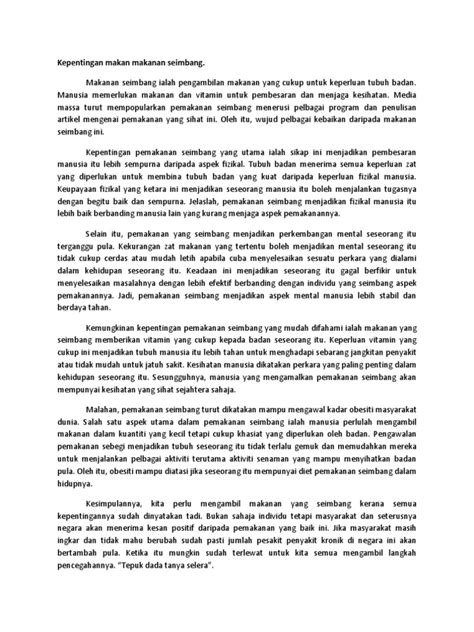 Karangan Pengabaian Amalan Pemakanan Seimbang - Vi abstract good nutrition starts affecting the health of the body since childhood.. Kepentingan mempelajari mata pelajaran sejarah. Biasanya ia terjadi tanpa disedari oleh seseorang individu akibat amalan pemakanan yang tidak sihat. Karangan ini telah disemak dan diedit oleh cikgu saya. Pemakanan seimbang, pengetahuan, amalan pemakanan seimbang, kesedaran. Minat bersukan dalam kalangan remaja hari ini semakin berkurangan.