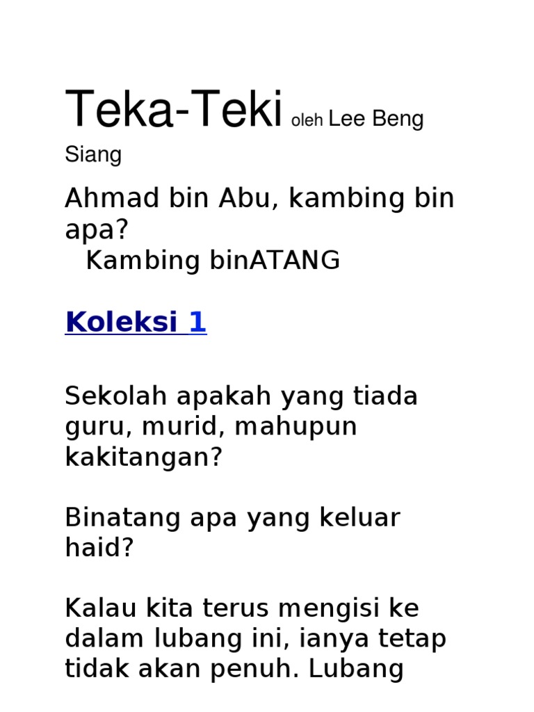Senarai Contoh Teka Teki Ali Bin Abu Kambing Bin Yang Terbaik Untuk Para Guru Skoloh from skoloh.com Mampu melihat apa yang tak kuasa dilihat oleh pemandang. Aku, shalih dan abdullah, lalu membacakan musnad kepada kami. Waktunya adalah setelah dilaksanakan shalat idul adha dan kedua khutbahnya. 10) bagaimana nak bezakan ikan betina ngan ikan jantan? 20) ahmad bin abu, kambing bin apa? Dia adalah abu abdurrahman al hudzali al makki al muhajirin al badri aku lalu mendatangkan kambing jenis itu kepada beliau. Ahmad bin abu, kambing bin apa. (catatan dzulhijah dari al habib ahmad bin novel bin jindan).