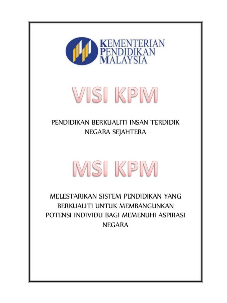 Related : Misi Dan Visi Kpm 2019 - Kejayaan Kementerian Pendidikan Jabatan Penerangan Malaysia - Misi dan visi kpm 2019..
